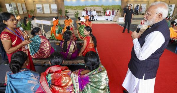 莫迪总理在马哈拉施特拉邦的Jalgaon与拉赫帕蒂·迪迪斯互动