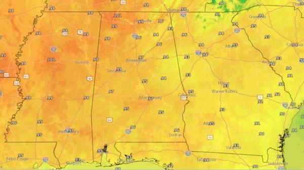今天阿拉巴马州会有多热?有些地方可以达到101华氏度