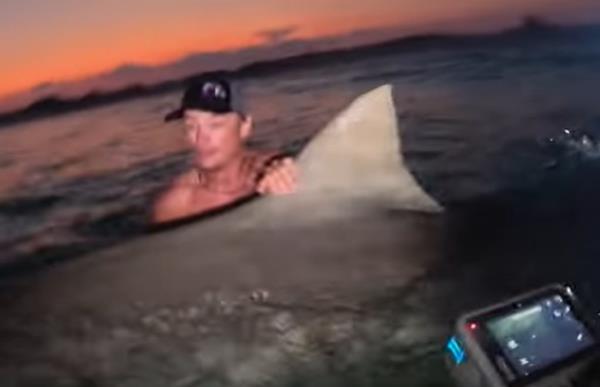 看一对在佛罗里达度蜜月的夫妇钓一条800磅重的虎鲨