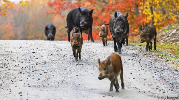 杂交野猪正在加拿大大草原上制造麻烦