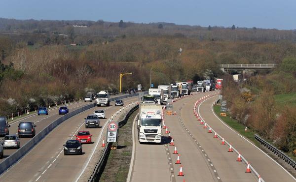 在肯特郡的M20公路上,警方报警称一名浑身是血的男子在路上行走,导致两英里长的交通堵塞