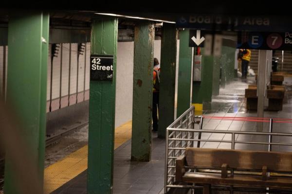 时代广场附近的水管破裂,导致地铁停运,街道封闭