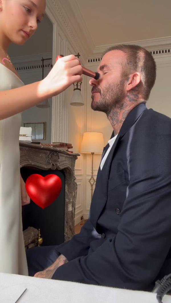 小贝在哈珀给他化妆后,在她的嘴唇上植吻