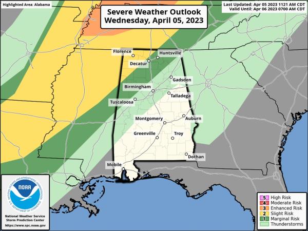 阿拉巴马州北部今晚可能会有几场强风暴;实施强雷暴警戒