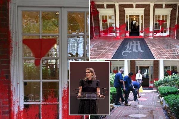 布鲁克林博物馆馆长的门上画着哈马斯的红色三角形