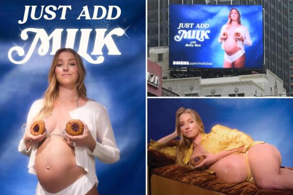 在时代广场的一则广告中,怀孕的作家用饼干覆盖乳头,这对广告牌的主人来说“太过分了”