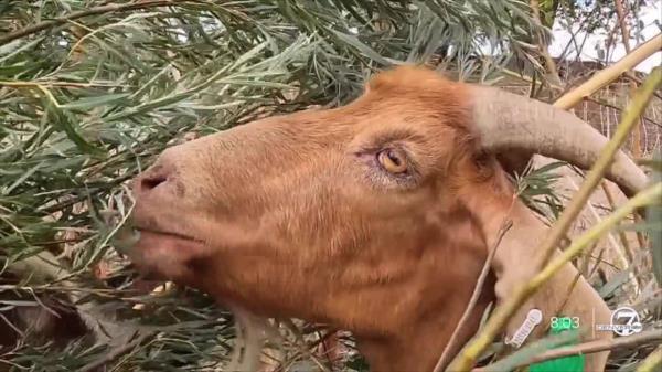 300只山羊在布莱顿的肯·米切尔开放空间吃草,以减少野火燃料
